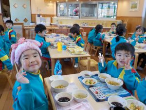 子ども達に「あしたはおべんとうのひだよ~!」