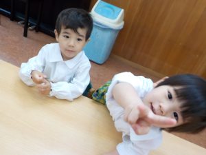幼稚園に慣れてきたもも組さん🍑にこにこ笑顔でお部屋まで来てくれます。お部屋ではみんなで手を繋いだりおままごとをしたりと少しずつお友だちのお名前も覚えてきました。