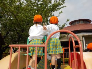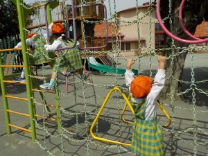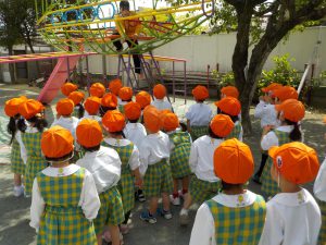 今日もなかよし広場の遊具指導を行い、正しい遊び方、危ない遊び方を教えてもらいました。小さいお友達も入園し、ひとつお兄さん、お姉さんになったのでお手本となる遊び方をしてほしいと思います。