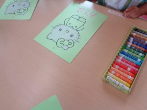 「赤い車にする!」「あいり先生と一緒の青い車にするー!」「うさぎさんはピンクかなあ~?」「緑色のおほしさまも可愛いよね!」ともも組さんの個性豊かさがたくさんあふれていて、とても楽しく行うことが出来ました✨