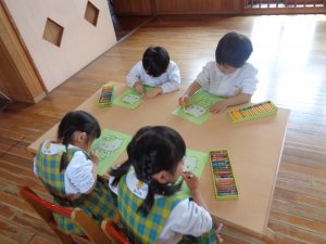 今日は色塗りの練習をしたもも組さん🍑