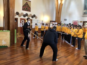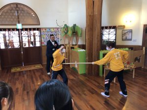 さすまたの持ち方、効果的な使い方、不審者対応等についても実践を交えながらお話していただきました。