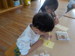マーカーペンを上手に使いながら、オリジナルのお当番表を完成させることができました♡