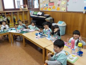 くじ引きをして番号が書いてあるのを見ると「何番だった?」とお友達とくじを見せ合っていました😊