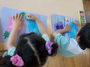 以前にのりまでの工程を終わらせていたので、クレヨンで仕上げのお絵描きをしました。