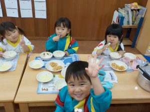 おかわりをできるのは、完食できた時・・・ちょっと躊躇してしまうお野菜も、おかわりが欲しくて食べたお友達もいました。