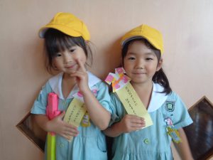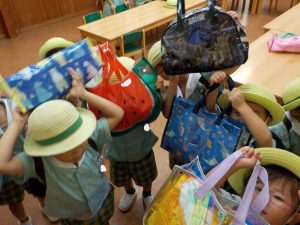 お友達同士でプールバックを見せ合いっこして朝から楽しそうな様子でした♪