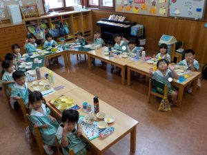 いっぱい食べるかな?と思いきや、、、プールでたくさんはしゃいだので疲れて眠そうなお友達が何人かいました😂
