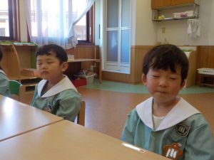 朝の集いで行う「おねむり」も上手になりました!