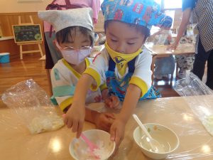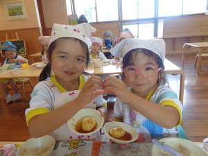 今日は年中さんが食育でじゃがいももちを作りました!
