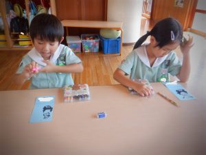 2学期からは名前も自分たちで書きます。大きく、丁寧に書けていて年長さんってすごいな~と実感した担任です👀