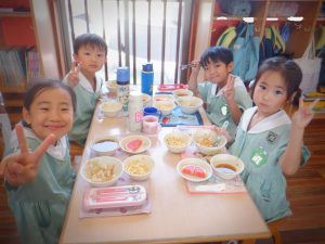給食も食べるスピードが速くなり、30分の時間内で食べ終わるお友だちが格段に増えました!!