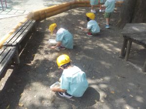 座る場面はおひざをしっかりと地面につけて、「ちょっと痛いけどがんばる!」と気合十分だった子どもたち💪