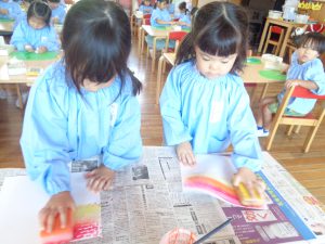 プールが終わりお着替えを自分で頑張っている姿が見えたり年長さんが年少さんの着替えをお手伝いしてくれている姿も見えました👀💕