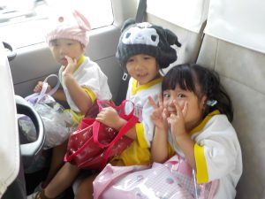 もも組さん、いちご組さん、すみれ組さん、たんぽぽ組さんの4クラスで行き初めて大きなプールにみんなで入ることにドキドキわくわくしながらバスで向かいました!🚌