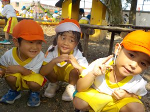 ご飯の後の外遊びでは同じクラスのお友達だけでなく他のクラスのお友達とも遊んでいる姿がありました!