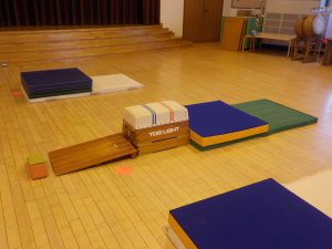 1学期の終わりから少しずつ挑戦していた台上前転…