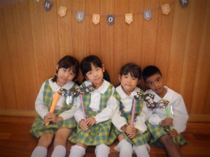 今年は仮面で仮装!自分たちでハロウィンに関連する絵を描いて切って貼りました✂