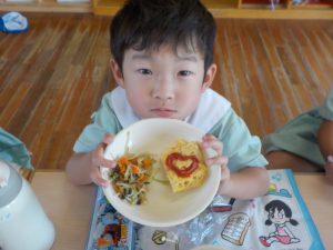 お昼ご飯では卵焼きにハートを描いてもらってニコニコなお昼の時間を過ごしました💓