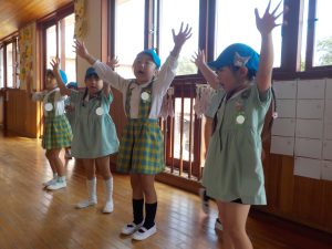 今日から手袋をつけての練習が始まりました。手袋をつけて練習ができるよう、お部屋でもたくさん練習をしてきたため踊りも歌も上手になってきました!
