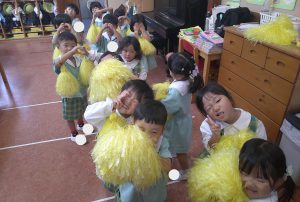 お遊戯では、歌を歌いながら踊ったり、止まるところでは止まるということができるようになってきました!