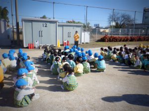 今回は子どもたちに訓練することを伝えずに行いましたが、しっかりと先生の話を聞いて、安全に避難することができました◎