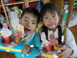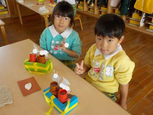 お部屋ではお店屋さんごっこの品物作り中!!