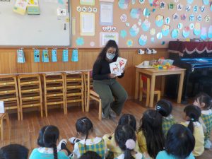 たんぽぽ組ではサンタさんの絵本を読み、サンタさんはいろいろなところで見ていることをお話しするとドキッと表情が変わるたんぽぽさんでした😝