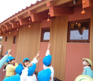 また、つぼみの詩保育園の軒下に干し柿を作るために柿が干されているので観察しに行きました👀「この干し柿は色が変わってるね」や「干し柿は甘そうだ~」と感想を共有していました。冬休み前にまた観察に行きたいと思います!