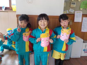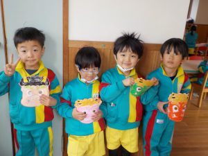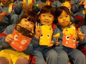 今日は、豆まきがありました!!実際の節分は2/3ですが、幼稚園では少し早めに鬼を退治しました😊