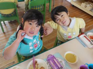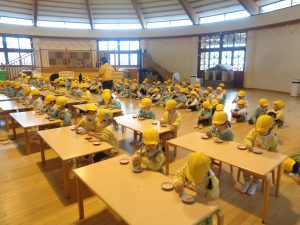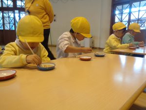 今日は年中さんが豆運び大会を行いました!
