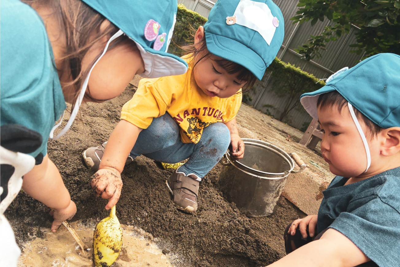 | 10:00~ | 室内遊び、散歩、戸外遊びなどクラスでの活動 お片付け 排泄(おむつ交換) 手洗い 昼食準備 |