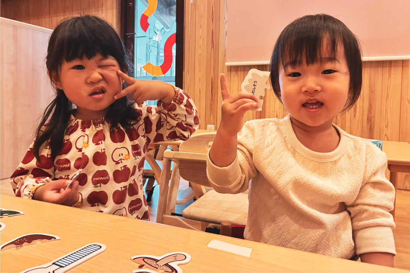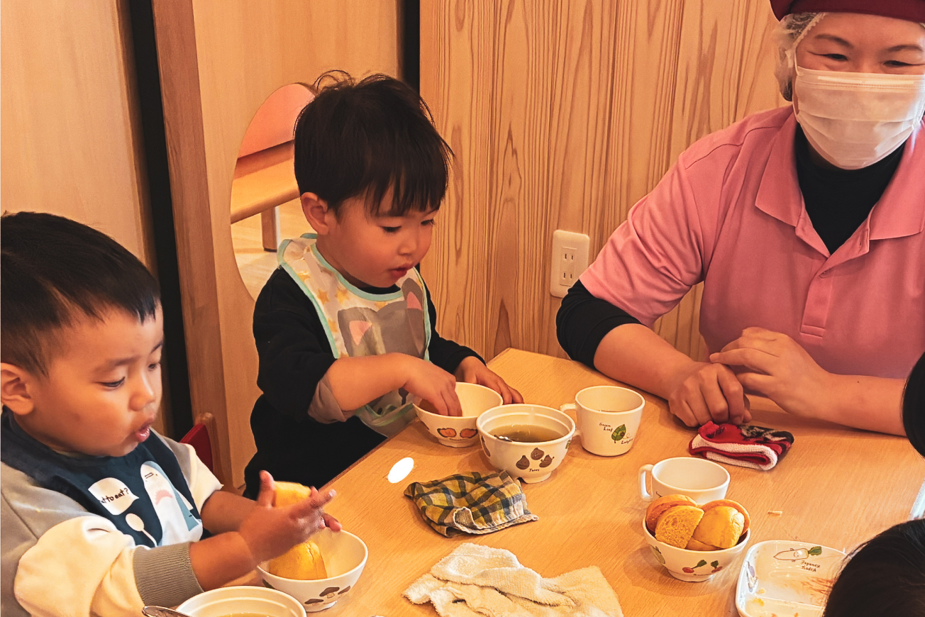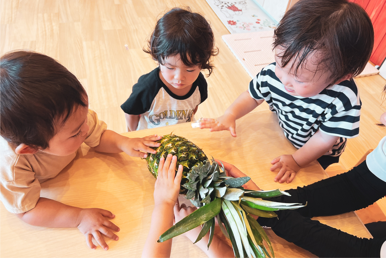 | 9:10~ | 手洗い 朝のごあいさつ 午前食(おやつ) 排泄(おむつ交換) |